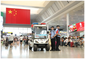 国庆、中秋假期将至,为护航旅客平安出行,近日,南宁铁路公安处全面加强车站、列车和线路治安防控,全力为旅客出行营造安全稳定的治安环境。图为民警在南宁东站执勤。 本报记者 马艳 本报通讯员 陈思安 摄