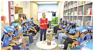 近日,国网金华供电公司组织红船共产党员服务队,开展电动汽车充换电站专项巡检和安全用电宣传活动。图为该公司客户服务中心员工向外卖骑手讲解安全用电与触电急救知识。 包峰嶂 摄
