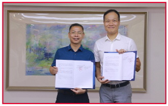 图为2021年8月24日,河源仲裁委员会主任蓝锋(左)率队走进广州仲裁委员会开展学习交流活动。双方签署了《合作协议书》。