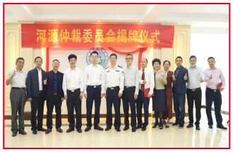 图为2020年10月21日,河源仲裁委员会举行揭牌仪式。