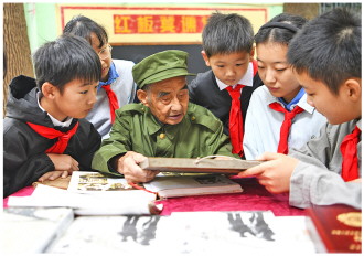 在10月25日中国人民志愿军抗美援朝出国作战75周年纪念日到来之际,安徽省合肥市蜀山区南七街道洪岗社区“红板凳课堂”,邀请95岁抗美援朝老兵张秉轴给孩子们讲述战斗故事,引导他们缅怀革命先烈,争当新时代好少年。