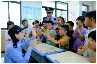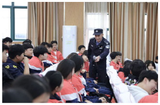 图③ 安徽省亳州市公安局高新分局民警近日来到亳州学院附属学校开展法治副校长进校园活动,提升学生法治意识和自我保护能力,筑牢校园安全防线。图为活动现场。