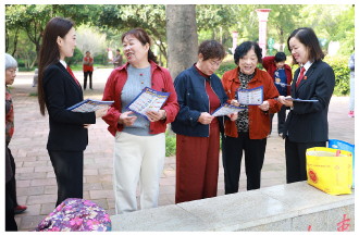 图② 为增强老年人法治观念,维护老年群体合法权益,河南省鄢陵县人民法院近日组织开展防范养老诈骗等系列普法宣传活动。图为法院干警在公园给老年人以案普法。