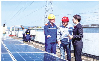 近日,国网衢州供电公司走进浙江健盛集团江山针织有限公司厂区,开展普法宣传活动。图为供电公司员工向企业能源管理负责人讲解《中华人民共和国节约能源法》有关规定。 周炫炫 摄
