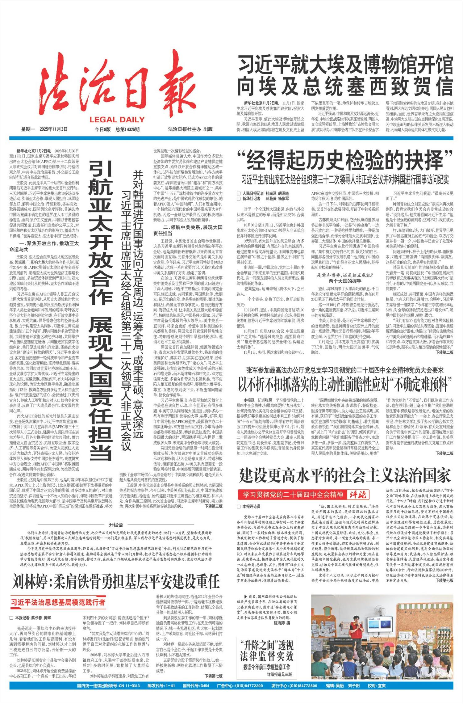 引航亚太开放合作 展现大国责任担当 习近平主席出席亚太经合组织第三十二次领导人非正式会议并对韩国进行国事访问立足周边、运筹全局、成果丰硕、意义深远   新华社北京11月2日电 2025年10月30日至11月1日,国家主席习近平应邀赴韩国庆州出席亚太经合组织(APEC)第三十二次领导人非正式会议并对韩国进行国事访问。行程结束之际,中共中央政治局委员、外交部长王毅向随行记者介绍此访情况。