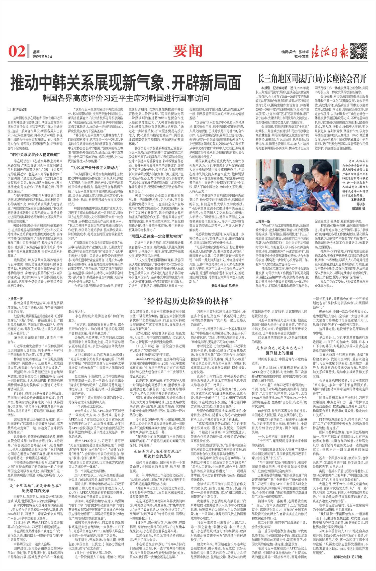 “经得起历史检验的抉择” 习近平主席出席亚太经合组织第三十二次领导人非正式会议并对韩国进行国事访问纪实 □ 人民日报记者 杜尚泽 胡泽曦