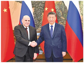 新华社北京11月4日电 记者孙奕 11月4日上午,国家主席习近平在北京人民大会堂会见俄罗斯总理米舒斯京。