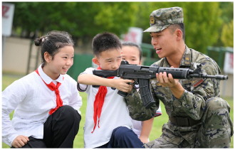 近日,武警安徽总队某部举行“军营开放日”活动,驻地300余名小学生探秘军营,零距离感受军营生活,接受国防教育,增强国防意识。