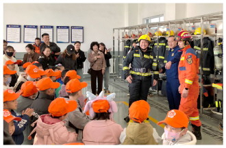 11月4日,新疆维吾尔自治区呼图壁县第二幼儿园100余名师生及家长走进呼图壁县消防救援大队,“零距离”体验、学习消防知识。图为消防人员结合幼儿年龄特点,通过互动问答、情景模拟等向孩子们讲解如何正确拨打119报警电话、火灾发生时如何逃生自救等常识。 本报记者 潘从武 本报通讯员 郭斌 洪文乐 摄