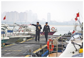 图② 10月26日,山东省威海市公安局火炬高技术产业开发区分局涝台派出所组织民警到小石岛港湾开展治安巡查。