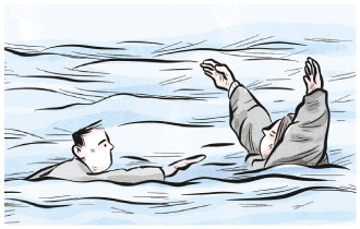 事后,他向《法治日报》记者回忆,江边石块嶙峋,一步之外便是深水区。落水者离岸约30米,身穿羽绒服,暂时浮在水面。见有人靠近,女孩情绪激动,伸手紧紧抱住他,两人瞬间失去平衡,接连呛水。