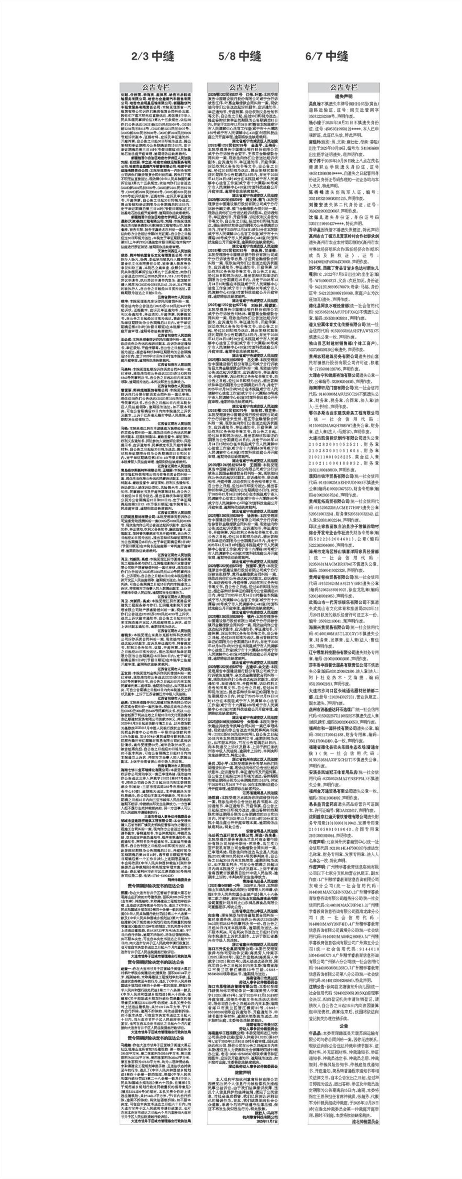 吴兵、邓小平:本院受理原告孙秀琴与你们民间借贷纠纷一案,现依法向你们公告送达起诉状副本、应诉通知书、举证通知书及开庭传票。自公告之日起经过30日即视为送达。答辩期限和举证期限分别为公告期满后的15日内,并定于2025年12月24日下午15:00在本院第6法庭公开开庭审理。逾期将依法缺席判决。