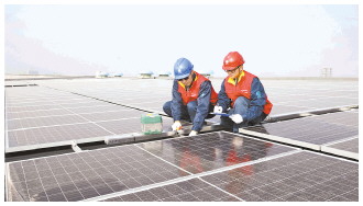 近日,国网金华供电公司组织共产党员服务队,开展屋顶分布式光伏发电项目上门巡检活动。图为服务队队员对横店影视产业园摄影棚的屋顶光伏组件进行全面检查,排查电缆接头是否牢固、并网保护设备是否正常运行。 王从航 摄