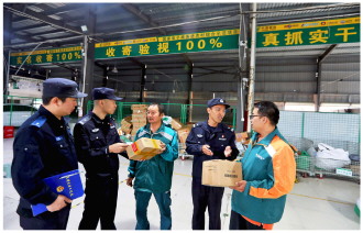 近日,江西省分宜县公安局组织民辅警开展寄递物流业安全检查,严格寄递物品实名登记、开箱检视等安全措施的落实,彻底消除各种安全隐患,确保寄递物流渠道安全畅通。图为民警在辖区寄递物流企业开展安全检查。 本报记者 黄辉 本报通讯员 黄小军 摄