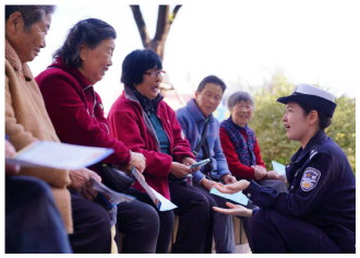 近日,安徽省含山县公安局交通管理大队组织民警走进攀桂社区,向老年人普及交通安全法律知识。图为民警向老年人讲解日常出行中需要注意的安全细节。