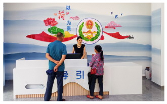 图为福建省建宁县综治中心导引台工作人员接待来访群众。