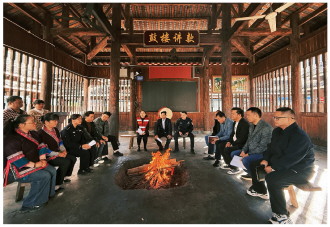 ▲ 近日,在广西壮族自治区三江侗族自治县古宜镇南站社区的祥和鼓楼内,三江县委政法委组织当地政法干警与社区群众开展“鼓楼议事”活动。大家围绕法治社区建设重点难点问题建言献策、共商解决方案,汇聚平安建设合力。图为“鼓楼议事”现场。 本报记者 吴良艺 本报通讯员 严艺莲 摄