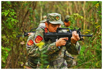 近日,安徽省合肥市庐阳区人武部组织民兵分队在陌生山林地开展战术训练,提升民兵分队在复杂条件下应急应战能力。图为民兵在山林地训练。 本报通讯员 牧耕 摄