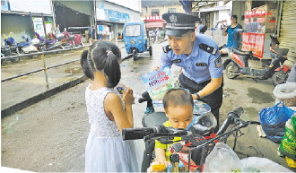 图为王磊在开展防溺水宣传。 宁波市公安局奉化区分局供图