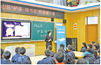 图② 杨帅在“护苗·绿书签”活动中讲授开学第一课。