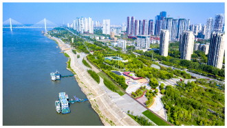 湖北省武汉市青山江滩在建设过程中使用固体废物7500吨,据测算每年可增加碳汇量700余吨。图为青山江滩一角。 CFP供图