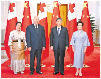 习近平强调,中共二十届四中全会对中国未来5年经济社会发展作出顶层设计和战略擘画。中国将聚焦高质量发展,进一步全面深化改革,扩大高水平对外开放,同世界各国共享发展机遇。中方提出四大全球倡议,就是要推动世界各国共谋发展、共享和平。愿同汤加共同践行四大全球倡议,为两国人民创造更加美好的生活,共建中国-太平洋岛国命运共同体,推动构建人类命运共同体。