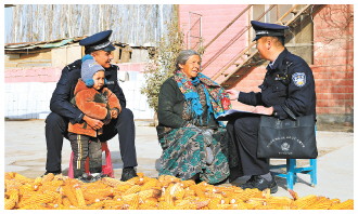 为提高群众安全防范意识和自我保护能力,新疆维吾尔自治区阿瓦提县公安局塔木托格拉克镇派出所近日组织民辅警开展入户走访活动,向群众普及反诈防骗知识和交通安全常识。图为民警向群众讲解常见电信网络诈骗类型。 本报记者 潘从武 本报通讯员 胡国华 摄