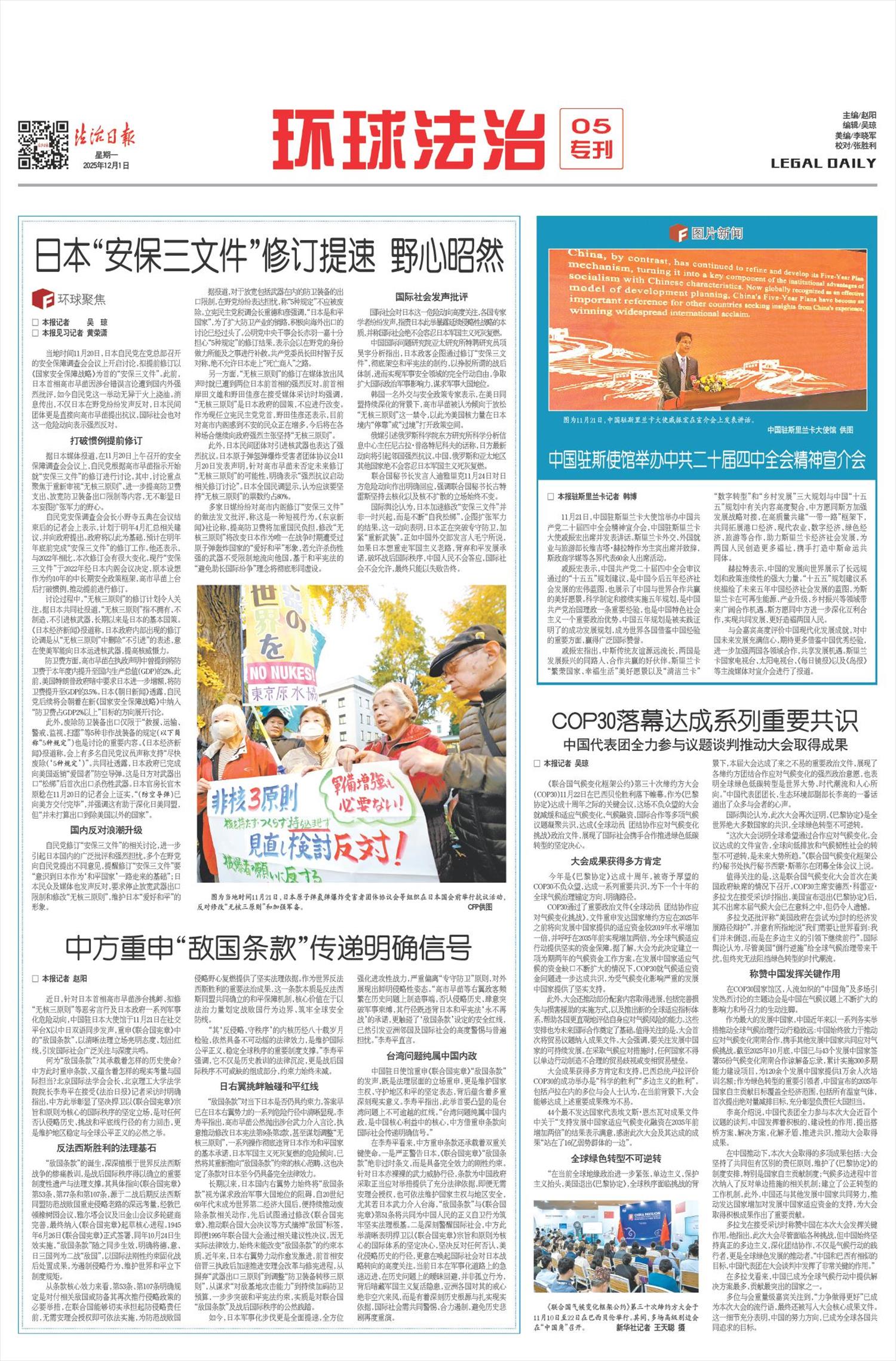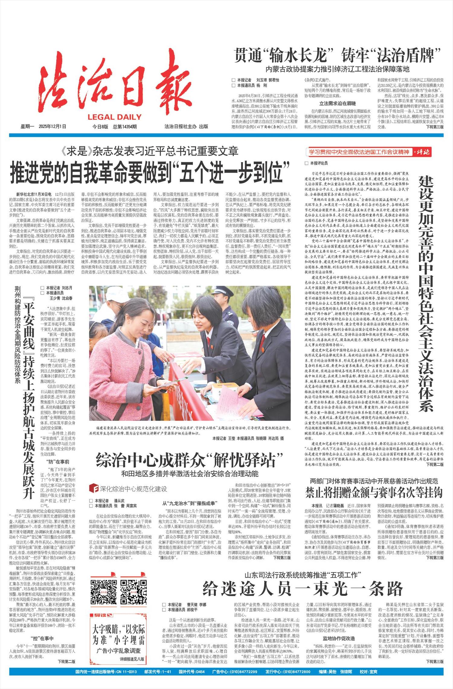 党的二十届四中全会强调“完善中国特色社会主义法治体系”,并把“社会主义法治国家建设达到更高水平”确立为“十五五”时期经济社会发展的主要目标之一,要求“协同推进科学立法、严格执法、公正司法、全民守法”。我们要牢牢扭住党的二十届四中全会提出的主要目标和战略任务,建设更加完善的中国特色社会主义法治体系,更好发挥法治固根本、稳预期、利长远的作用,为全面推进强国建设、民族复兴伟业提供坚实法治保障。