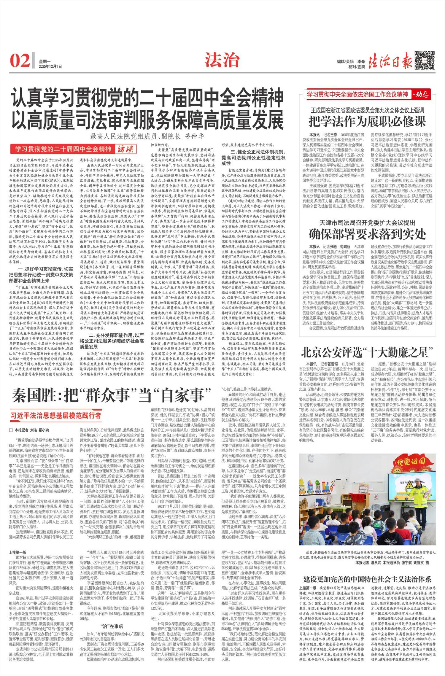 壮阔征程催人奋进,法治建设重任在肩。我们要深学笃信践行习近平法治思想和习近平总书记重要指示精神,深入学习贯彻党的二十届四中全会精神,认真贯彻落实中央全面依法治国工作会议部署,以坚定的决心排除阻力、以昂扬的姿态锐意进取,建设更加完善的中国特色社会主义法治体系,奋力开创法治中国建设崭新局面,在实现中华民族伟大复兴的壮阔征程中,谱写法治中国建设更加精彩的华章。