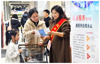 为进一步优化营商环境,河北省邯郸市永年区政务服务中心聚焦企业和群众需求,开展政务服务进商圈活动。图为近日该中心工作人员向居民讲解相关政策。 本报通讯员 胡高雷 武明坤 摄