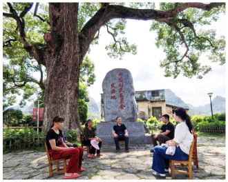 图为河池市宜州区合寨村村民在大榕树下议事。