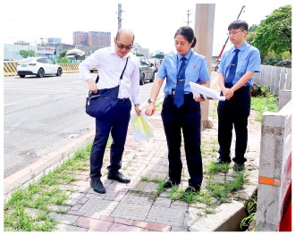 图为广东省广州市海珠区人民检察院邀请“益心为公”志愿者参与督促整改盲道缺失或不规范问题案跟进监督。