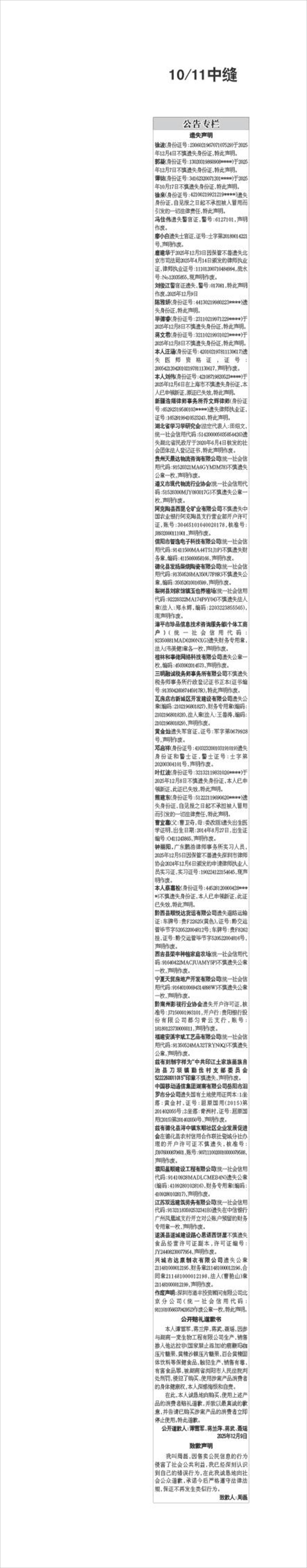 徐波(身份证号:230602196707107529)于2025年12月4日不慎遗失身份证,特此声明。