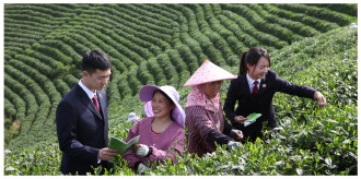 图① 图为河南省信阳市浉河区人民检察院干警走进浉河港镇茶园,向茶农讲解法律知识。 佘志鹏 摄