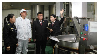 图② 图为河南省信阳市浉河区人民检察院干警走进某食品企业,开展食品安全领域问题整改“回头看”活动。