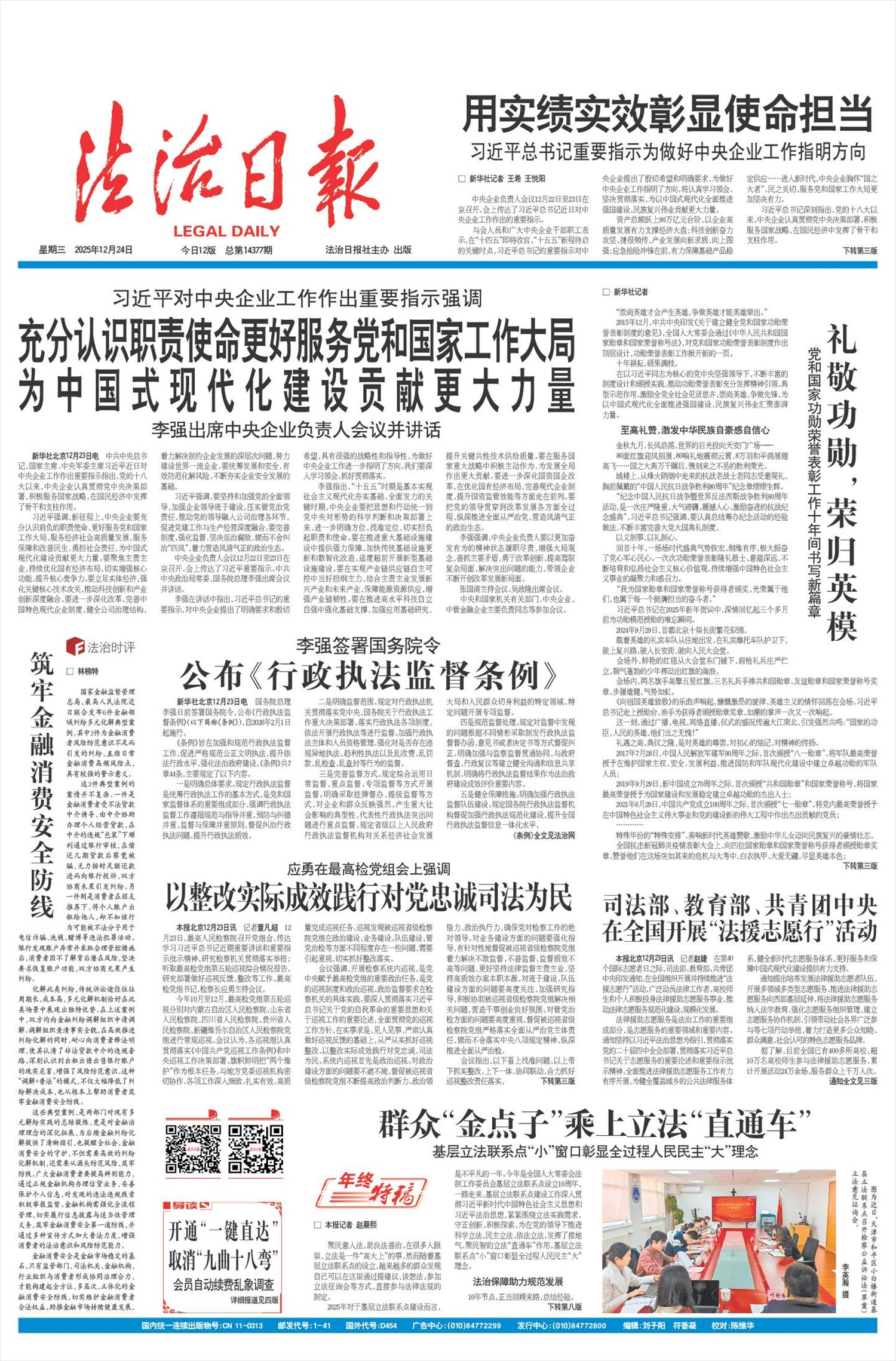 李强签署国务院令 公布《行政执法监督条例》   新华社北京12月23日电 国务院总理李强日前签署国务院令,公布《行政执法监督条例》(以下简称《条例》),自2026年2月1日起施行。