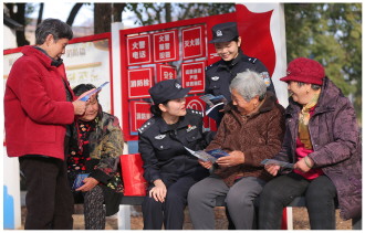 ▲ 近日,江苏省宜兴市公安局丁山派出所联合丁蜀警务站在辖区开展群众走访工作,民警在听取群众意见的同时,开展年末安全宣防,增强群众安全意识。图为民警向群众发放安全宣防资料。