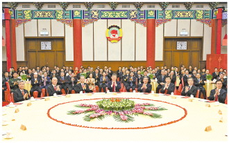 在京中共中央政治局委员、中央书记处书记,全国人大常委会、国务院部分领导同志,全国政协领导同志和曾任全国政协副主席的在京老同志出席茶话会。