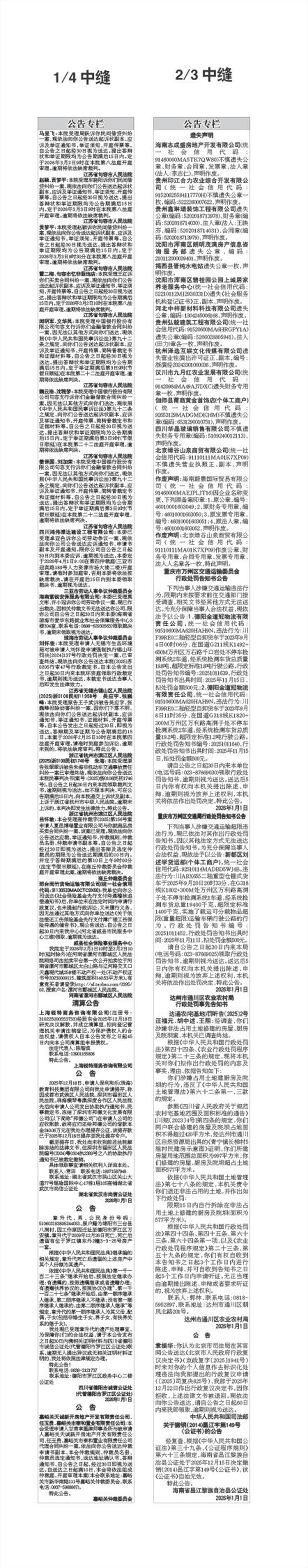 下列当事人涉嫌交通运输违法行为,限期内未按要求前往交通部门接受调查,相关文书经其他方式无法送达。为充分保障当事人合法权益,现依法予以公告:1、德阳金道冠物流有限责任公司,统一社会信用代码:91510600MA620HAH9N。违法行为:川F39RE0二轴轻型自卸货车于2023年9月4日00时06分,在国道G211线K1492+650M万州区万石路千口岩处不停车检测系统2车道,经系统检测车货总质量19.8吨,超限定标准1.8吨行驶公路。行政处罚告知书编号:20251011639,行政处罚告知书出具时间:2025年11月15日,拟处罚金额500元;2、德阳金道冠物流有限责任公司,统一社会信用代码:91510600MA620HAH9N。违法行为:川F39RE0二轴轻型自卸货车于2023年9月8日11时35分,在国道G318线K1820+300M万州区万利路高洞子处不停车检测系统2车道,经系统检测车货总质量19.2吨,超限定标准1.2吨行驶公路。行政处罚告知书编号:20251011640,行政处罚告知书出具时间:2025年11月15日,拟处罚金额500元。