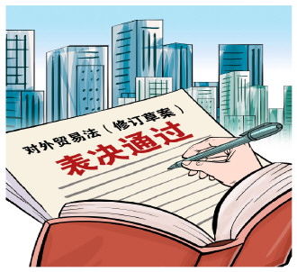 《中华人民共和国对外贸易法》(以下简称对外贸易法)是中国对外贸易领域的引领性和保障性法律。该法自1994年颁布施行,后经四次修改,每一次修改都展示出中国外贸发展的谋篇布局。2023年9月,对外贸易法的修订工作正式列入十四届全国人大常委会立法规划。2025年9月8日,十四届全国人大常委会第十七次会议对对外贸易法(修订草案)进行了初次审议,并向社会各界公开征求意见。12月27日,十四届全国人大常委会第十九次会议表决通过新修订的对外贸易法,该法自2026年3月1日起施行。