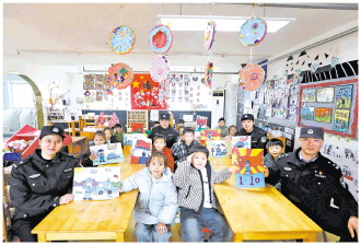 ▲ 在第六个中国人民警察节到来之际,江西省分宜县公安局组织民警走进辖区校园,通过情景模拟、案例再现、互动问答等形式,手把手教学生识别危险信号、掌握避险技巧。图为1月6日,小朋友送上“致敬人民警察”卡通绘画作品。 本报记者 黄辉 本报通讯员 黄小军 摄