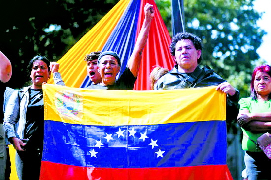1月3日,在委内瑞拉首都加拉加斯,民众在米拉弗洛雷斯宫附近集会。 新华社发