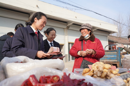 图③ 近日,山东省成武县人民法院汶上集人民法庭干警走进集市,通过发放普法宣传手册等形式向群众讲解民间借贷、买卖合同等相关法律问题。图为法院干警向群众讲解法律知识。