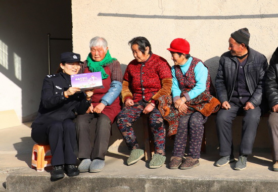 为增强广大农村群众安全意识,1月13日,安徽省巢湖市公安局组织开展“新春走基层 平安进万家”活动,向群众普及反诈、禁毒等知识。图为民警向村民讲解安全知识。 本报通讯员 高渡 摄