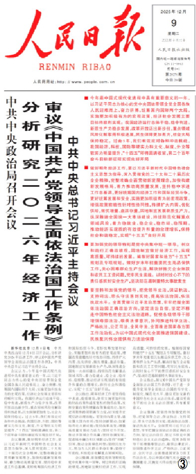 中共中央政治局2025年12月8日召开会议,审议《中国共产党领导全面依法治国工作条例》(以下简称《条例》)。会议强调,要坚持和加强党的领导,把党领导立法、保证执法、支持司法、带头守法落到实处,提高依法治国、依法执政水平。全面贯彻习近平法治思想,牢牢把握全面依法治国正确政治方向,坚定法治自信,坚定不移走中国特色社会主义法治道路。促使各级领导干部增强尊崇法治、敬畏法律意识,协同推进科学立法、严格执法、公正司法、全民守法,全面推进国家各方面工作法治化,为以中国式现代化全面推进强国建设、民族复兴伟业提供有力法治保障。