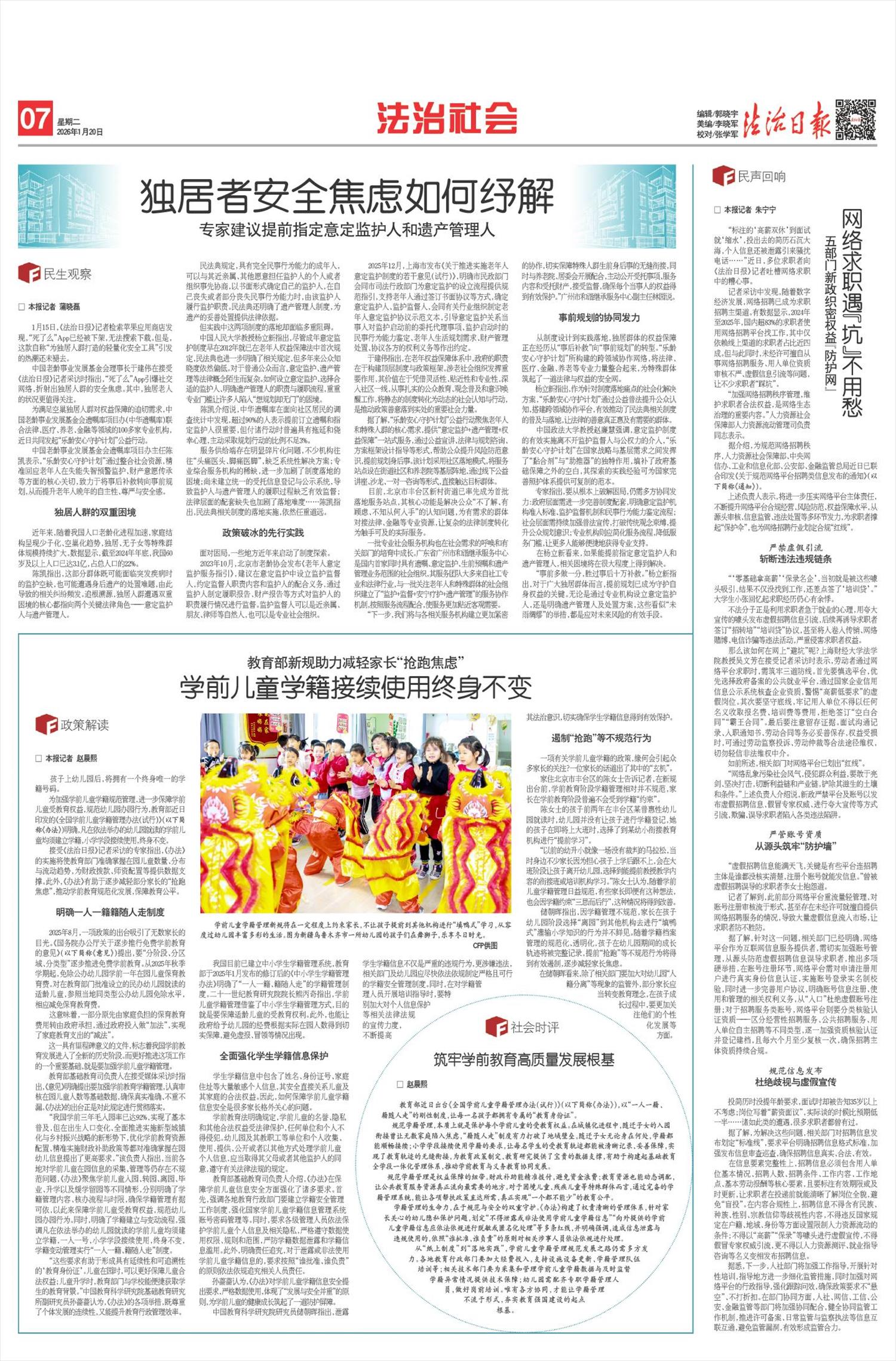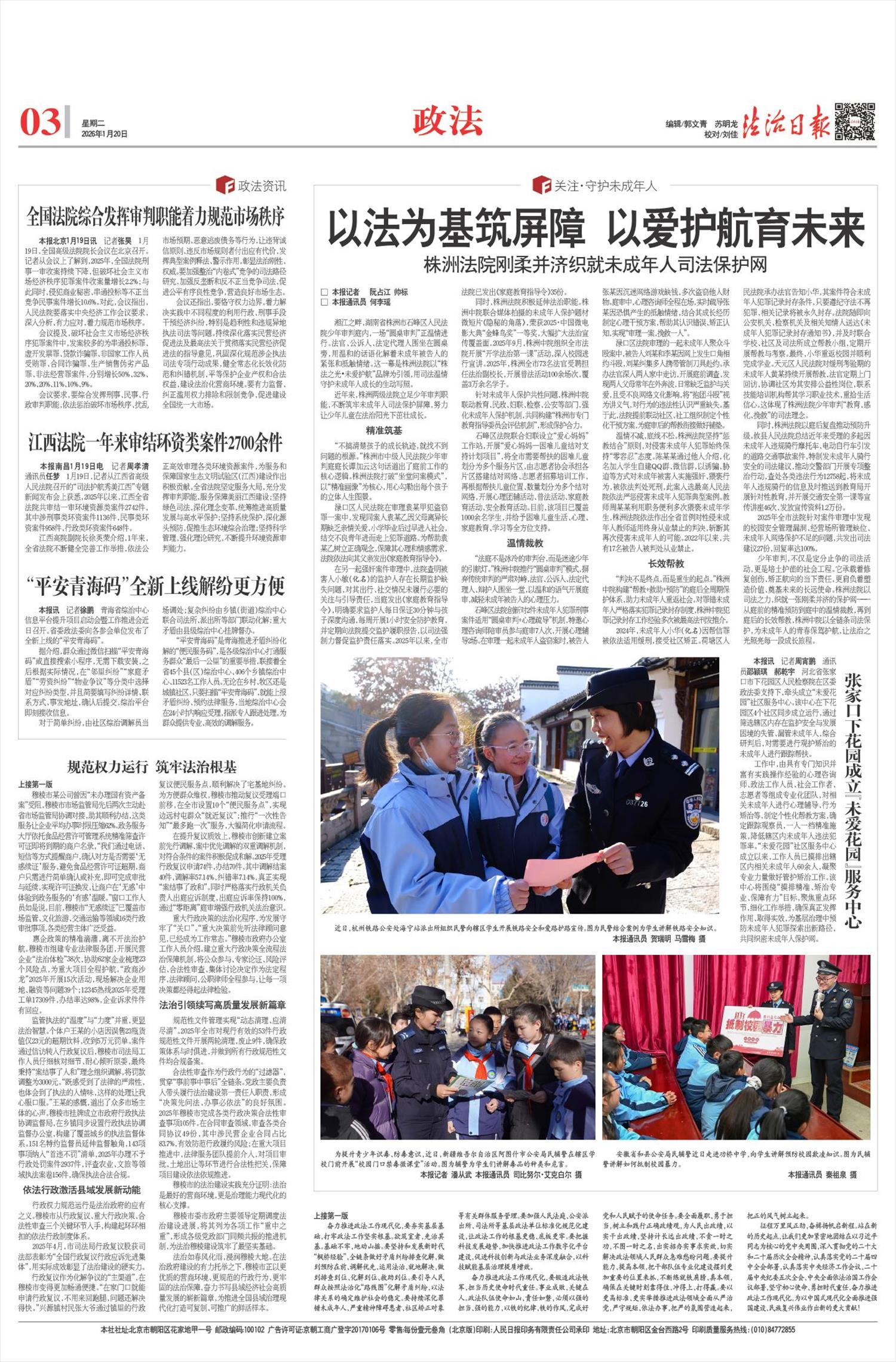 着力保障民生福祉、维护社会公平正义。要牢记“民生无小事,枝叶总关情”,依法妥善审理民生领域案件,健全涉拖欠工资、住房交付、高额彩礼等重点领域民生案件审理机制,助力兜牢民生底线。要敏于把握社会关系新变化,依法妥善化解新型矛盾纠纷,公平公正、平等平衡保护各方利益,通过典型个案审理和法治宣传做好示范引领。要加强未成年人司法保护,在依法公正办案的基础上,协同做好符合未成年人保护规律的社会综治工作,提升综合保护实效。要坚持立案登记制不动摇,持续优化诉讼服务,耐心细致负责任地引导当事人选择合适的纠纷解决渠道,实质性保障群众诉权。