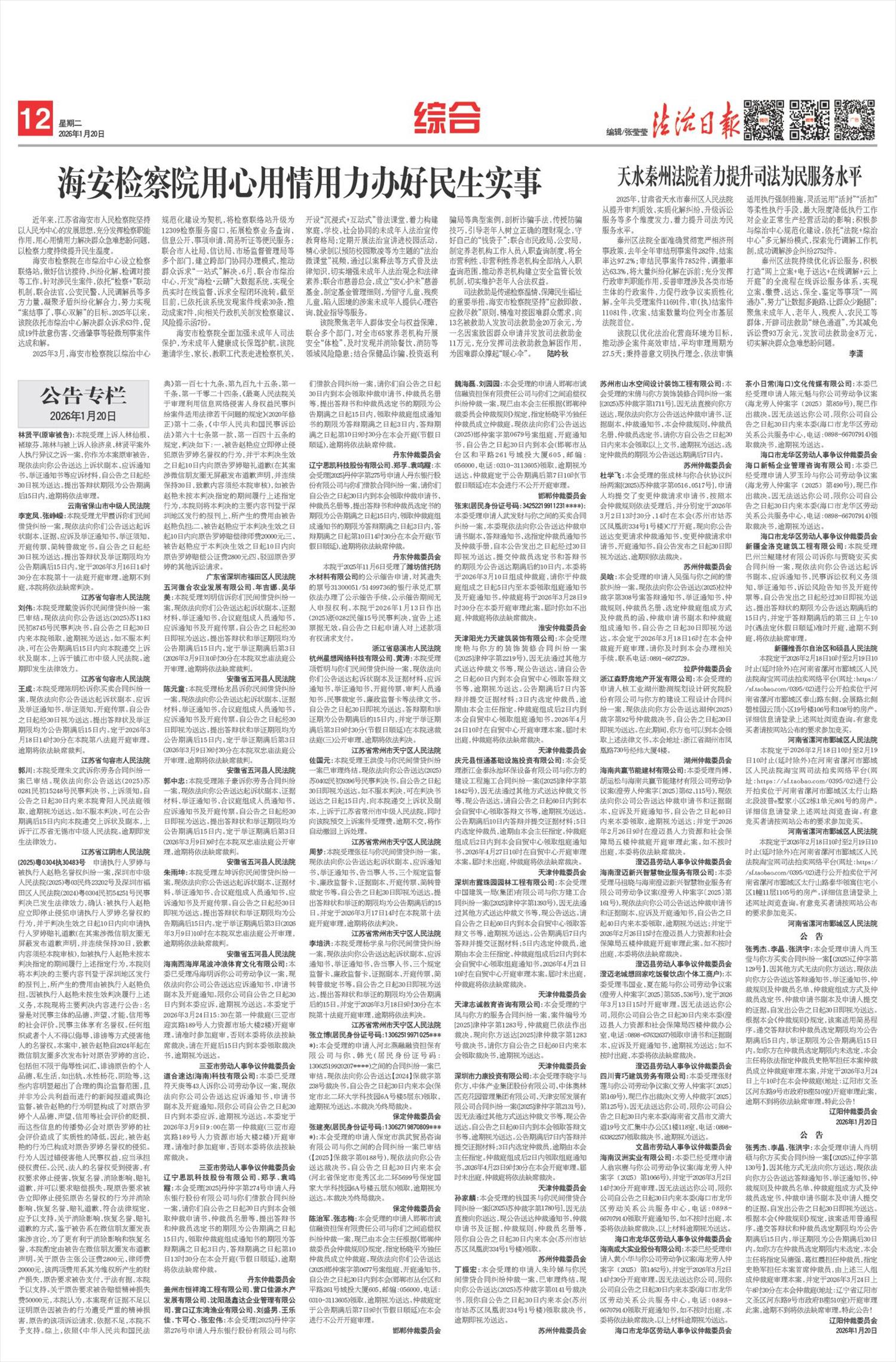 海口新畅企业管理咨询有限公司:本委已经受理申请人罗玉玲与你公司劳动争议案(海龙劳人仲案字﹝2025﹞第490号),现已作出裁决。因无法送达你公司,限你公司自公告之日起30日内来本委(海口市龙华区劳动关系公共服务中心,电话:0898-66707914)领取裁决书,逾期视为送达。