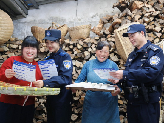 近日,江苏省南京市公安局六合分局冶山派出所组织民警走村入户,了解群众需求,普及反诈知识,并做好冬季安全提示。图为民辅警向群众宣讲反诈知识。