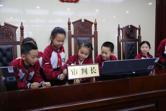 近日,黑龙江省鸡西市中级人民法院邀请辖区中小学生走进法庭,开展法治实践活动,零距离感受法律的庄严与神圣,让学生们从小树立尊法守法的意识。图为小学生们在法庭参观。 本报记者 张冲 本报通讯员 杨成林 摄