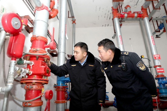 近日,重庆市永川区应急管理等部门组成联合检查组走进永荣镇养老院开展安全隐患排查,切实筑牢冬季安全防线。图为检查人员查看消防设施设备。